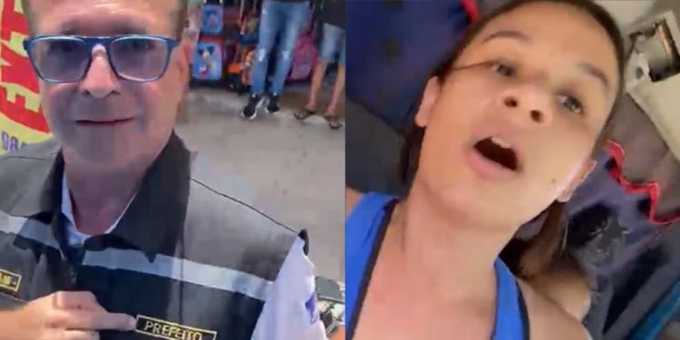 A cena, gravada pela jovem, ocorreu por volta de 12h30 desta quinta-feira (30), no centro da cidade, em frente à loja Extra Cell, por causa do estacionamento do caminhão do casal. O marido parou o caminhão para obter informações. O prefeito, vestido de colete de agente público, disse que o veículo estava em local proibido, e discutiu com a jovem, armando o “barraco”.