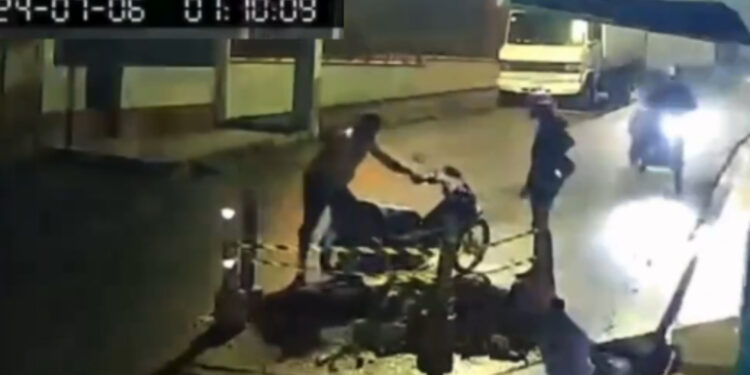 Três minutos depois, outro motociclista perdeu o controle no mesmo local e atingiu o primeiro motociclista, que caiu novamente.