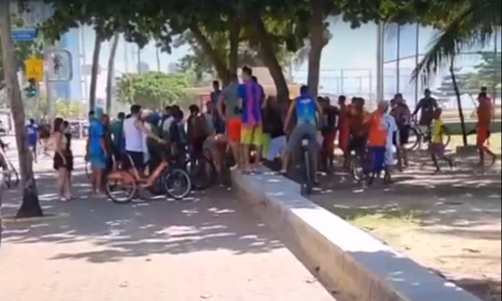 No vídeo, é evidente que várias pessoas curiosas cercam o homem no calçadão, próximo ao cruzamento da Avenida Boa Viagem com a Rua Ondina.