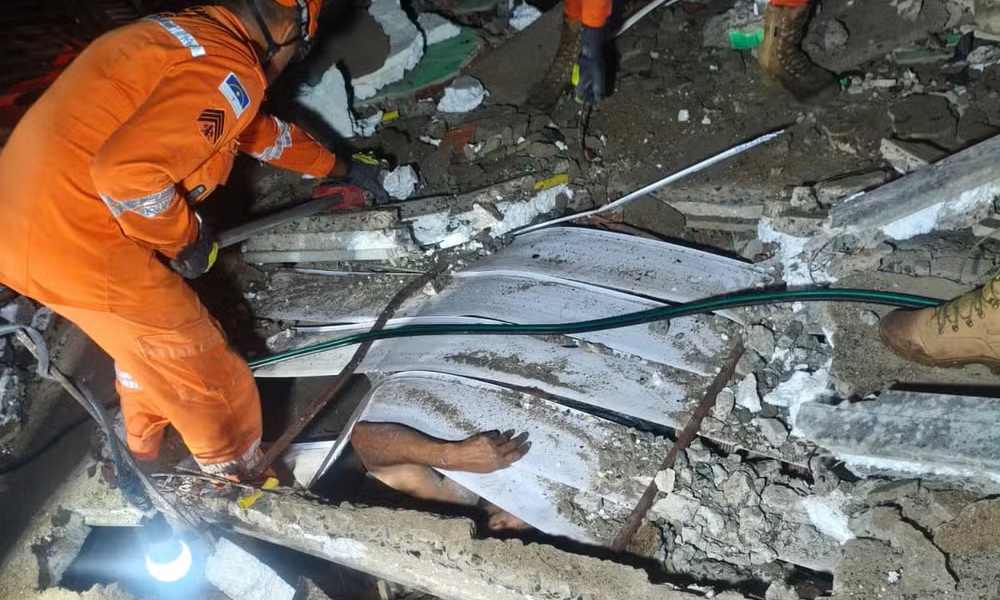 Um imóvel de três andares desabou em Olinda, no Grande Recife, na madrugada desta quinta-feira (16), e um idoso de 72 anos foi resgatado dos escombros por bombeiros. A estrutura da residência ruiu à 1h55 na Rua Ayrton Senna do Brasil, no bairro de Jardim Atlântico. pic.twitter.com/IbEMWhiYUp