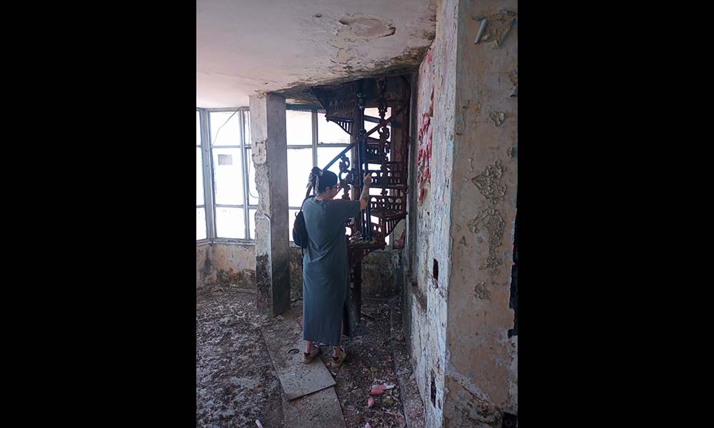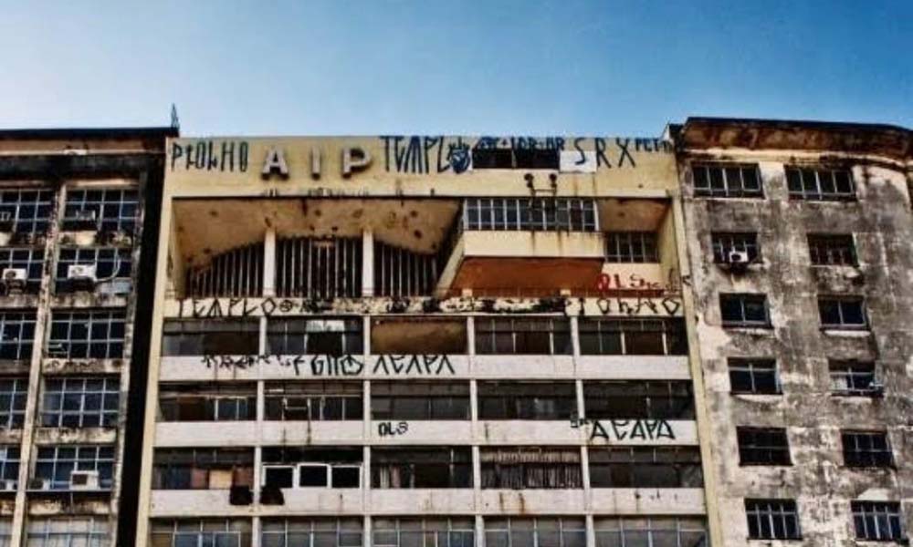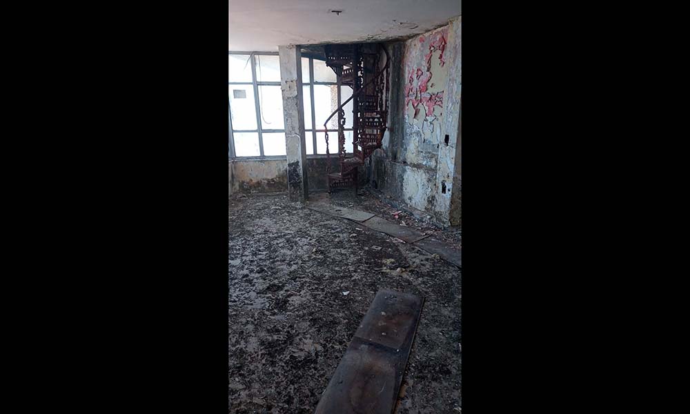 Atualmente falta elevador, janelas sem manutenção, cadeiras quebradas e restos de materiais enferrujados.
