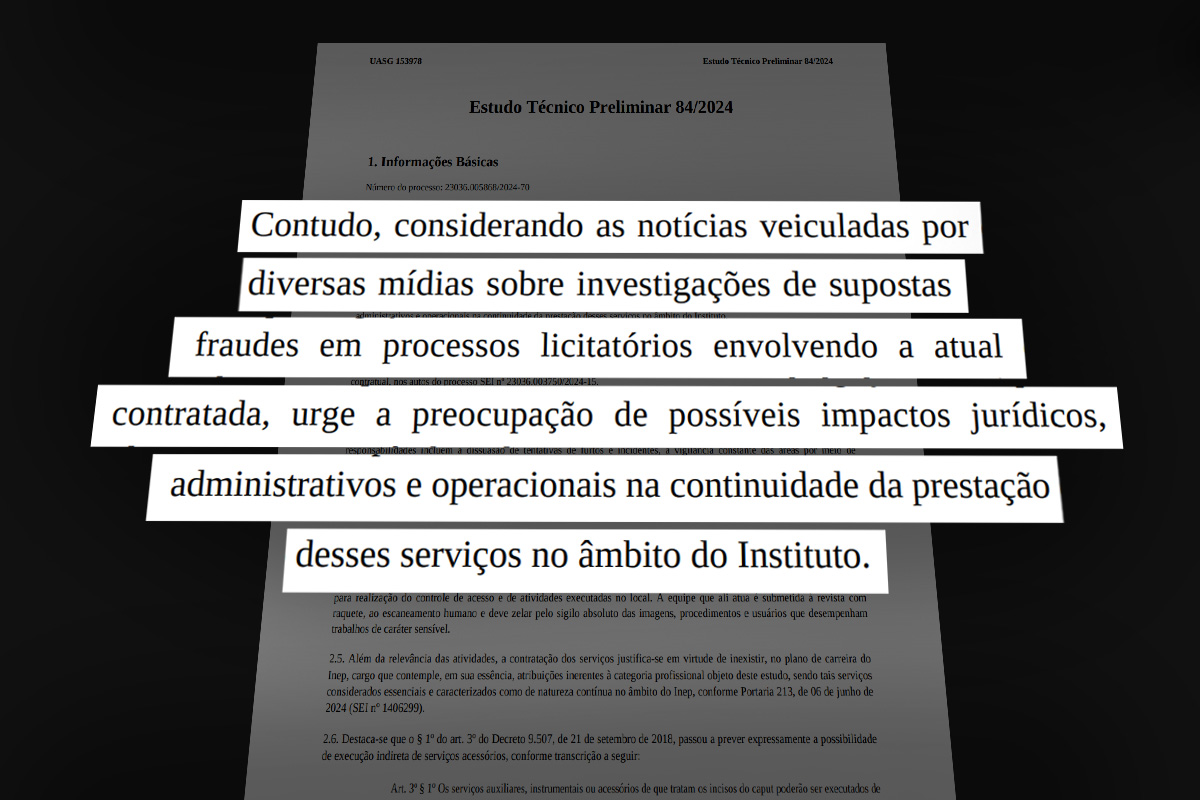 “Considerando as notícias veiculadas por diversas mídias sobre investigações de supostas fraudes em processos licitatórios envolvendo a atual contratada, urge a preocupação de possíveis impactos jurídicos, administrativos e operacionais na continuidade da prestação desses serviços no âmbito do Instituto”, relata o estudo técnico preliminar.
