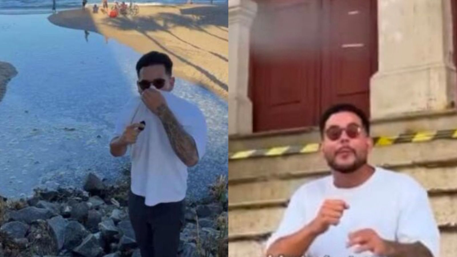 Anderson percorreu pontos turísticos icônicos, denunciando o forte odor de urina, o acúmulo de lixo em monumentos históricos e o esgoto descartado diretamente na Praia de Boa Viagem — que já sofre com as restrições devido aos ataques de tubarão.
