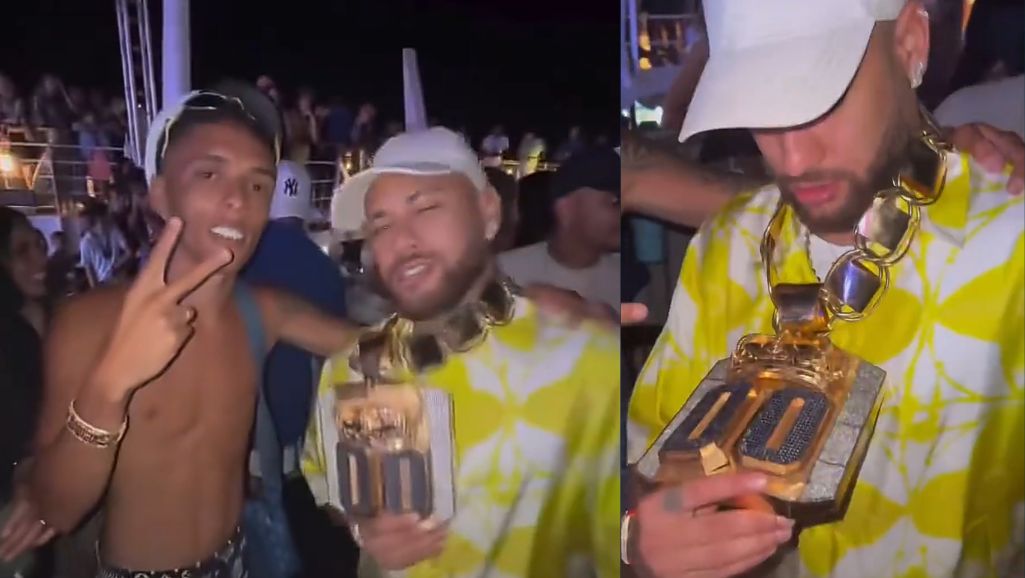 Em um vídeo publicado nas redes sociais, o influenciador deu uma colar de ouro para o jogador, com os números 00 seguidos. Os dois brincaram sobre a situação, e Neymar agradeceu o amigo.