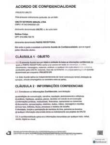 Acordo de confidencialidade assinado pelo influenciador Nathan Felipe: