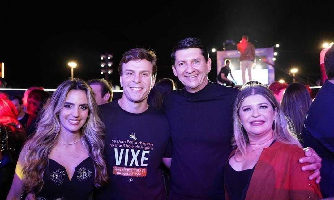 Lara Secchi Coelho, ao lado do pai Gilberto Secchi, e do ex-prefeito Miguel Coelho (UB)