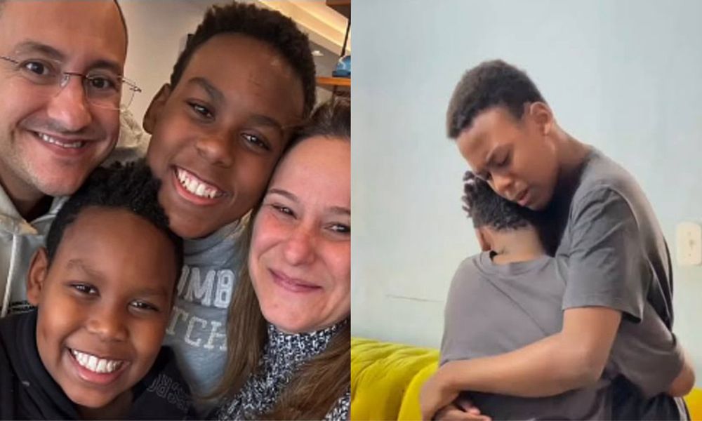 Em publicações nas redes sociais, a mãe deles mostrou a reação de Kauê ao saber da notícia que a família também adotaria Gabriel.