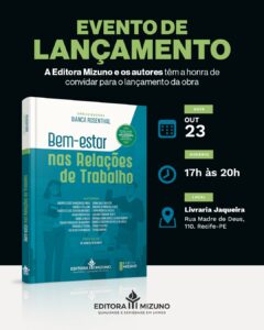 Com Informações da Assessoria – No próximo dia 23 de outubro, a Editora Mizuno promove, na Livraria Jaqueira, em Recife, o lançamento da obra Bem-Estar nas Relações de Trabalho, organizada por Bianca Rosenthal. A coletânea reúne especialistas das áreas jurídica, da saúde, organizacional e social em uma reflexão profunda sobre os desafios e caminhos possíveis para a construção de ambientes corporativos mais saudáveis, éticos e sustentáveis.