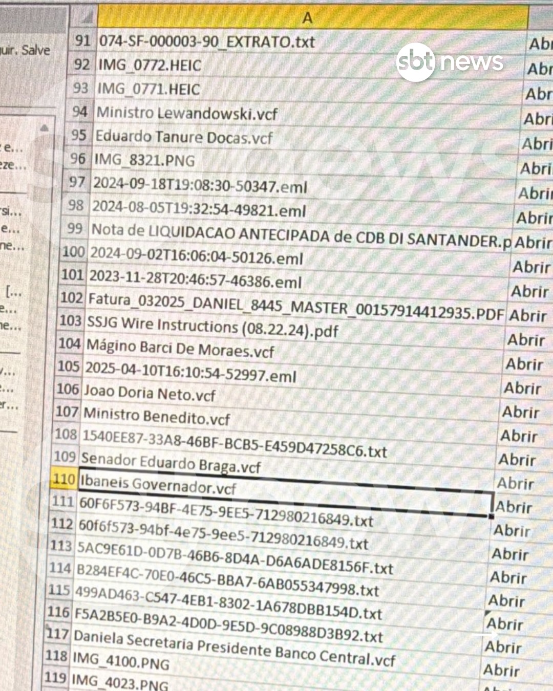 Com informações do SBT News – Imagens obtidas com exclusividade pelo SBT News mostram a lista de contatos extraída de um dos telefones do banqueiro Daniel Vorcaro, preso na quarta-feira (4).
