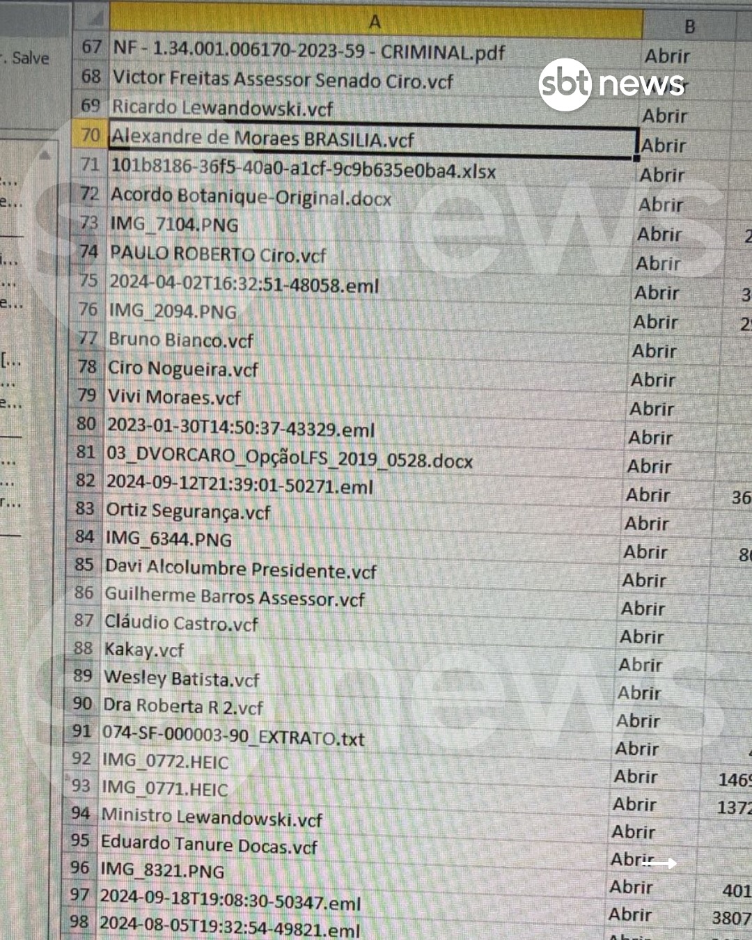 Há contatos pessoais de três ministros do Supremo Tribunal Federal: Dias Toffoli, Alexandre de Moraes e Nunes Marques, além do telefone do ex-ministro Ricardo Lewandowski e de seu filho Henrique, de ministros do Superior Tribunal de Justiça, como Benedito Gonçalves, e governadores do Distrito Federal, Ibaneis Rocha e do Rio de Janeiro, Cláudio Castro.