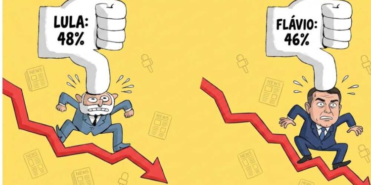 Do Metrópoles – A pesquisa Datafolha divulgada neste sábado (11/4) mostrou que os principais pré-candidatos à disputa da Presidência da República, Luiz Inácio Lula da Silva (PT) e Flávio Bolsonaro (PL), também lideram os índices de rejeição.