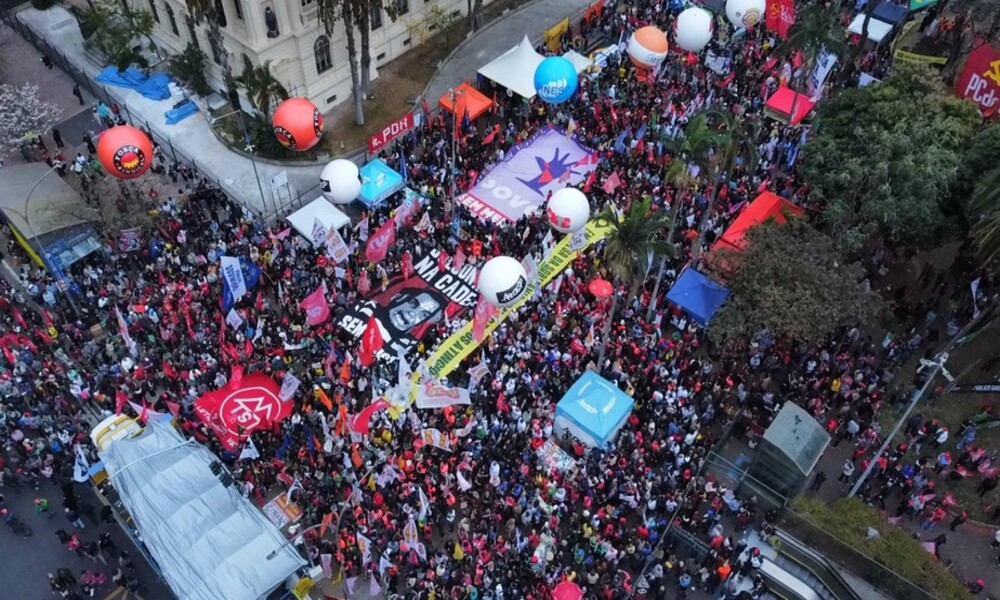 Da Redação do Blog — Centrais sindicais, movimentos sociais e partidos de esquerda ocupam a Praça da República, em São Paulo, na manhã deste domingo (7), em um ato contra a anistia aos envolvidos no golpe de 8 de janeiro e em defesa da soberania nacional.