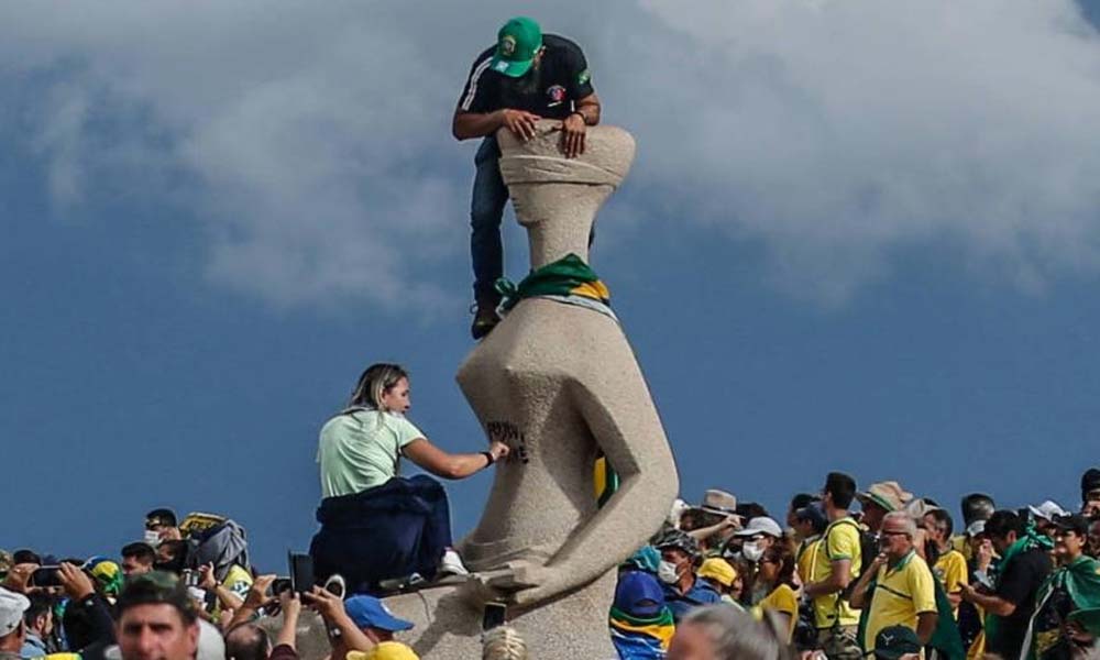 Débora Rodrigues dos Santos escreveu "perdeu, mané", em monumento