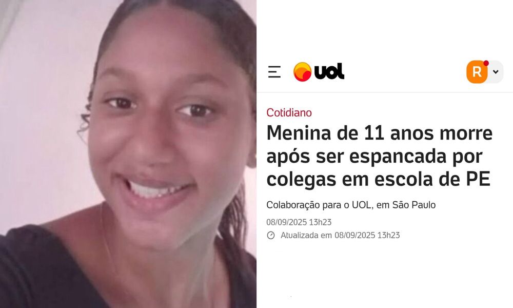 Do UOL – Uma menina de 11 anos morreu após ter sido espancada por colegas dentro da Escola Municipal Tia Zita, em Belém do São Francisco, no sertão de Pernambuco.