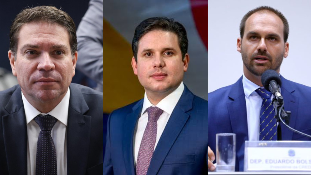 Alexandre Ramagem (PL-RJ), Hugo Motta (Republicanos-PB) e Eduardo Bolsonaro (PL-SP)