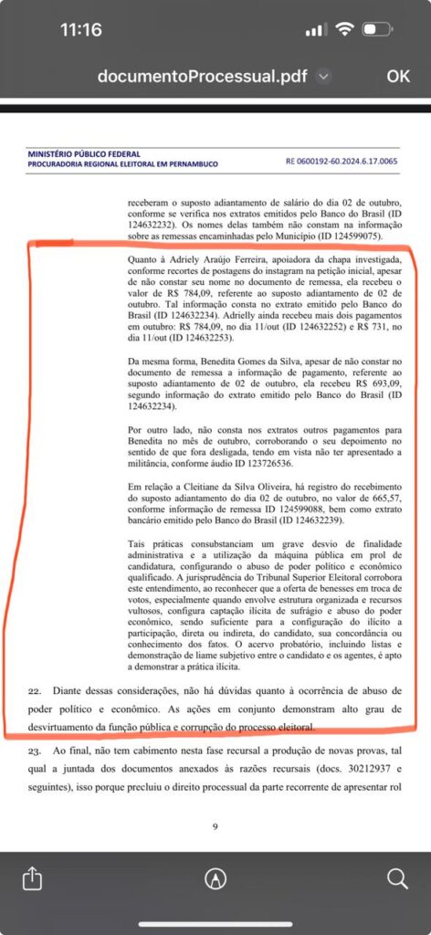 Os condenados recorreram, alegando que não houve prova concreta, que as contratações eram legais e que a vitória, com mais de 4 mil votos de vantagem, prova a legitimidade do resultado. Mas, segundo o MP Eleitoral, as irregularidades foram bem documentadas e os depoimentos confirmam um esquema de favorecimento eleitoral.
