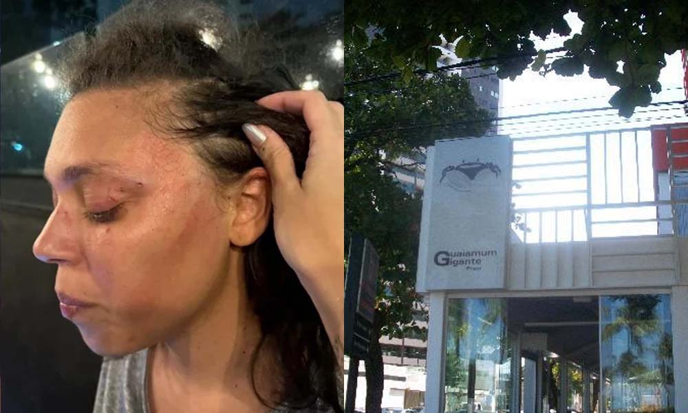 A mulher afirma ainda que o gerente do restaurante Guaiamum Gigante facilitou a saída do agressor do local, o “escoltando” para fora.