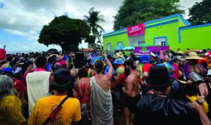 Neste domingo (2), também teve gritos de “Sem anistia” e “Vai ser preso” em volta do grupo percussivo Ghreia, que animava os foliões com músicas e também falas políticas.