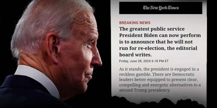 Do Estadão — O jornal americano The New York Times, um dos mais importantes e influentes do país, pediu em editorial nesta sexta-feira (28) que o presidente dos Estados Unidos, Joe Biden, abandone sua campanha à reeleição depois do desempenho desastroso no debate contra Donald Trump na quinta (27).