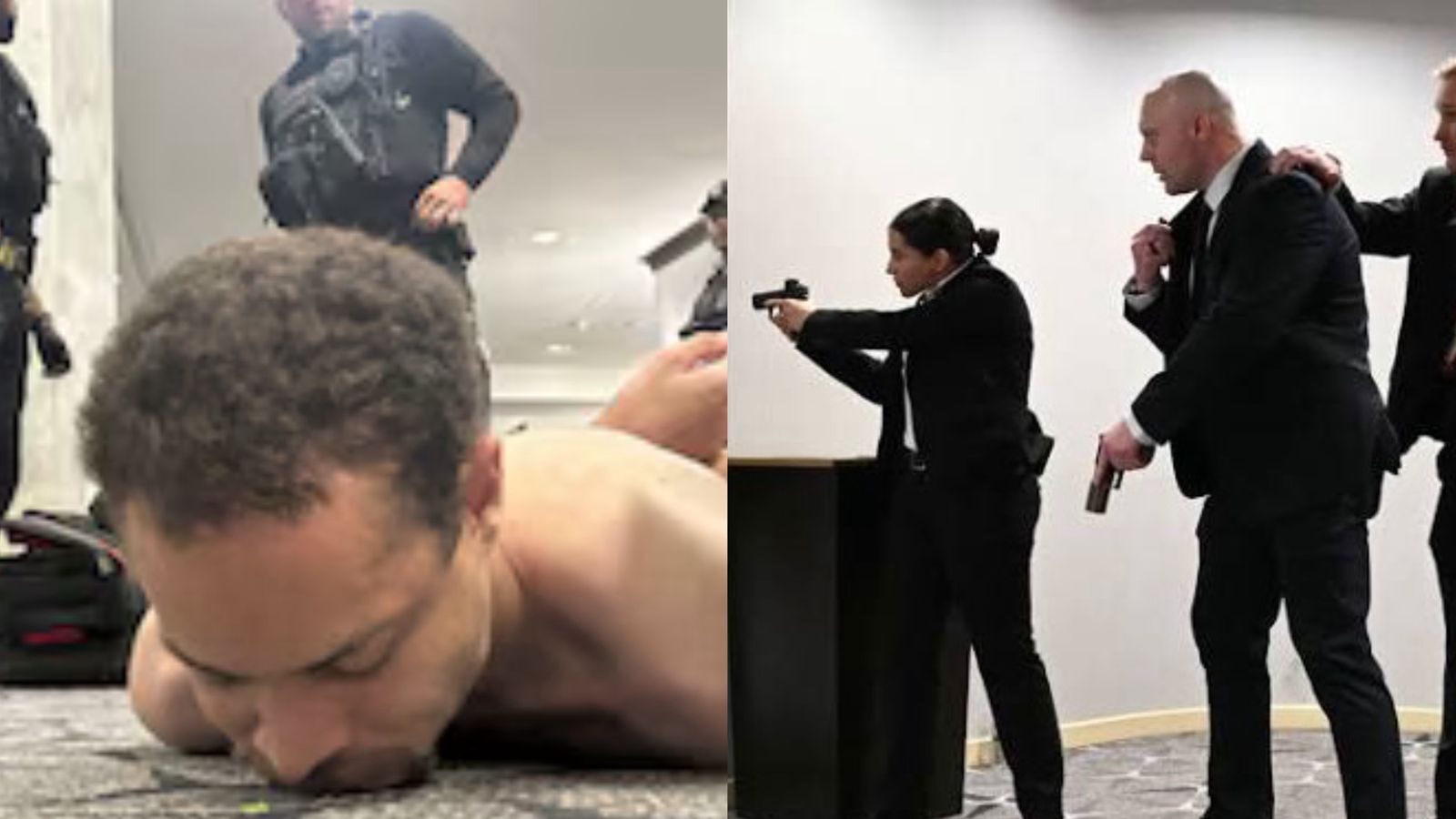 Por volta das 20h, minutos após o início do evento, um atirador passou correndo por um posto de controle de segurança no Washington Hilton, de acordo com um vídeo de segurança postado por Trump. No vídeo, vê-se policiais perseguindo o homem, enquanto agentes vestidos de smoking sacam suas armas e correm em direção ao salão de baile.
