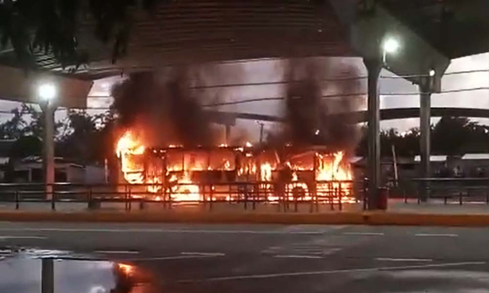Imagens enviadas ao WhatsApp da TV Globo mostram o ônibus em chamas. O Corpo de Bombeiros foi acionado às 5h20 e informou que a equipe que foi ao local terminou de apagar o fogo às 6h40.