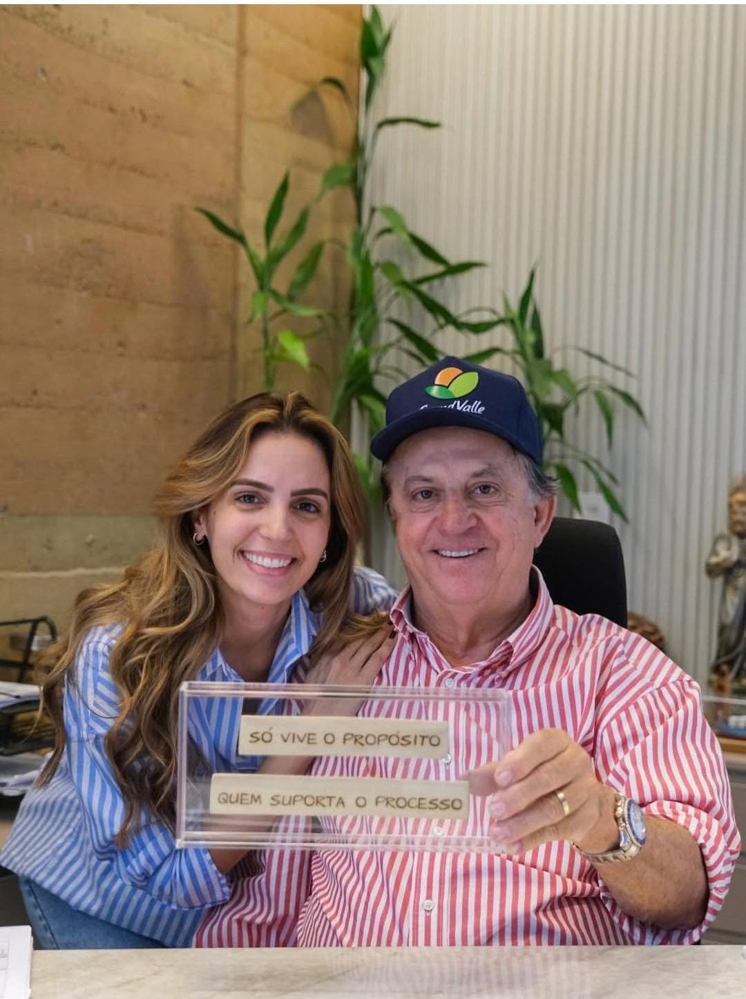 Lara Secchi Coelho, ao lado do pai Gilberto Secchi, e do ex-prefeito Miguel Coelho (UB)