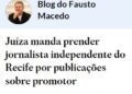 Há pouco foi a vez da Folha de São Paulo que fez uma matéria super redonda sobre o caso: “Juíza manda prender jornalista de PE por denúncias contra promotor”.