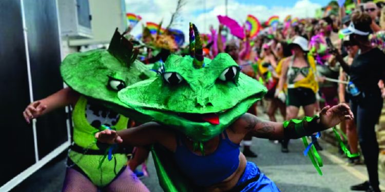 Já a artista Letícia está na Truck desde o primeiro desfile, quando foi às ruas curtir como foliona. Mas a paixão a puxou para dentro da corda. Já na segunda ida, Letícia entrou de vez no bloco e hoje é uma das “sapas” que lotaram o brejo.