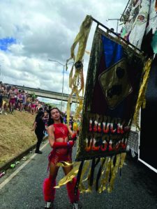 A porta-estandarte Penélope saiu de São Paulo para deslumbrar o público como uma das integrantes do bloco.
