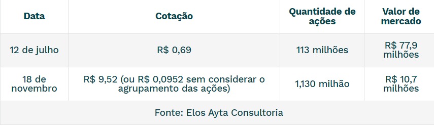 Segundo os cálculos da Elos Ayta, isso representaria um prejuízo de R$ 67,2 milhões caso Melo Neto tivesse liquidado a sua posição no início da semana.