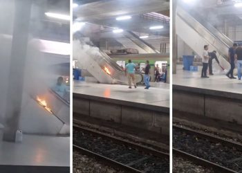 Da FolhaPE — Uma escada rolante da Estação Recife do Metrô pegou fogo após um usuário jogar...