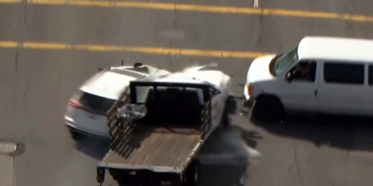 Da Redação do Blog — Uma perseguição digna de filme de ação terminou em tragédia e muita destruição nas ruas de Long Beach, na Califórnia, nesta quinta-feira (28). O motorista de um caminhão plataforma (flatbed) fugia da polícia em alta velocidade quando causou um verdadeiro caos no trânsito: bateu em mais de uma dúzia de veículos, feriu várias pessoas e ainda tentou sair caminhando como se nada tivesse acontecido.