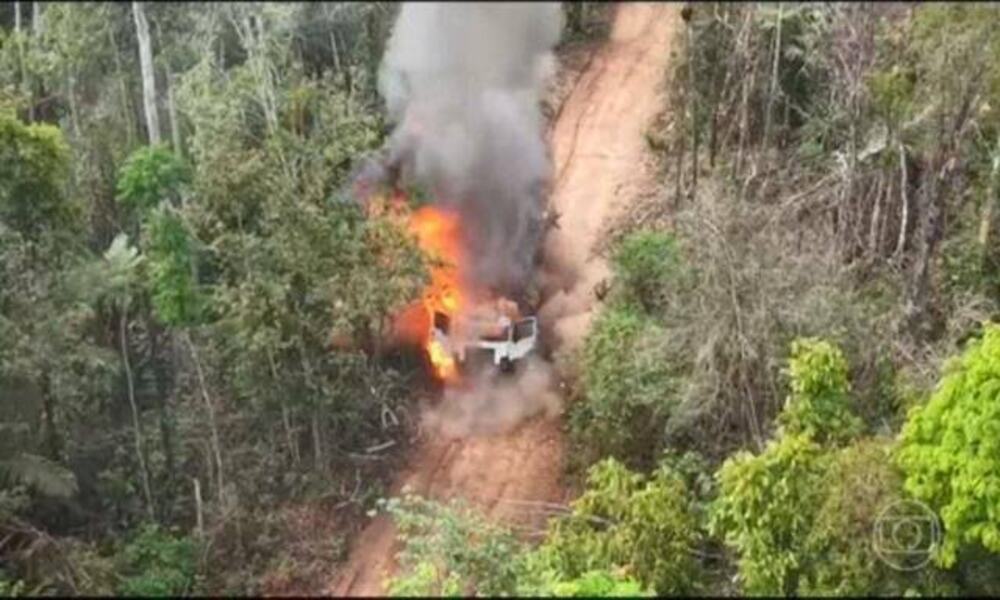 Do Globo News – A polícia Federal destruiu equipamentos usados para extração ilegal de madeira na terra indígena Roosevelt, em Rondônia.