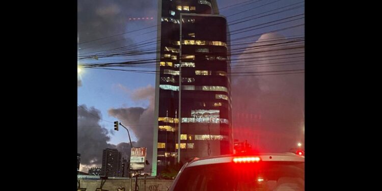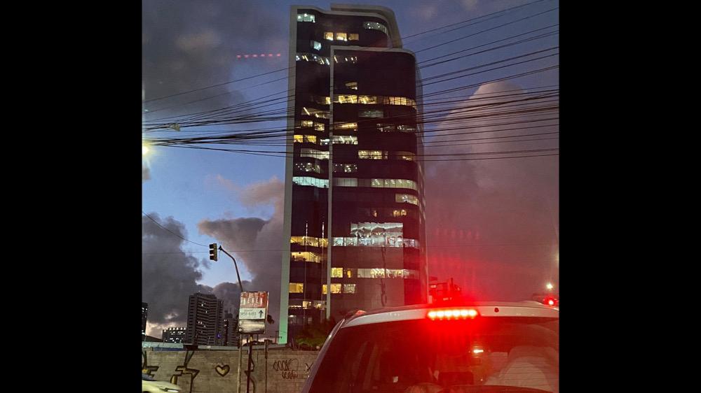 Imagens feitas por pessoas no local mostram uma aglomeração de pessoas na frente do prédio, que fica na Avenida Antônio de Goes, no Pina, Recife. (Veja o vídeo abaixo).