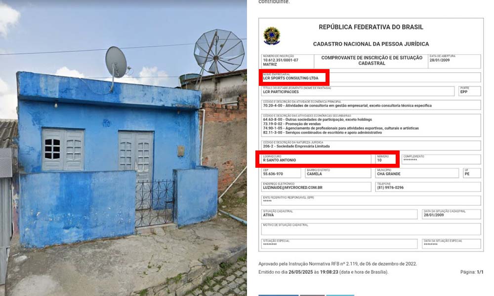 EXCLUSIVO, Por Luiz Roberto Marinho — Uma das duas empresas do presidente do Sport Club do Recife, Yuri Romão, a LCR Sports Consulting, tem como uma das finalidades agenciamento de jogadores. Tanto a LCR como a Múltipla Serviços, Participações e Investimentos, a outra empresa, têm o mesmo endereço, numa casa modesta da Rua Santo Antônio 10, no município de Chã Grande, na Zona da Mata.