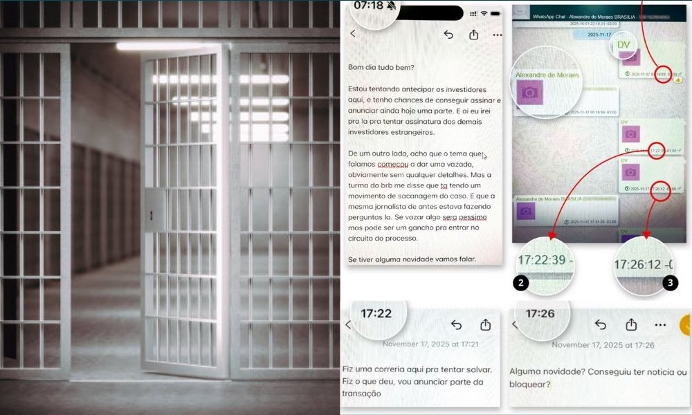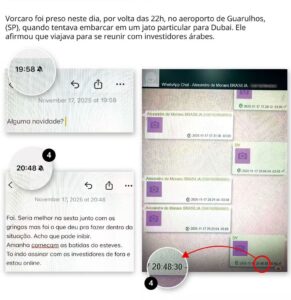 De O Globo – Uma intensa troca de mensagens entre Daniel Vorcaro e Alexandre de Moraes se estendeu por todo o dia da prisão do dono do Banco Master pela Polícia Federal (PF), em 17 de novembro de 2025.