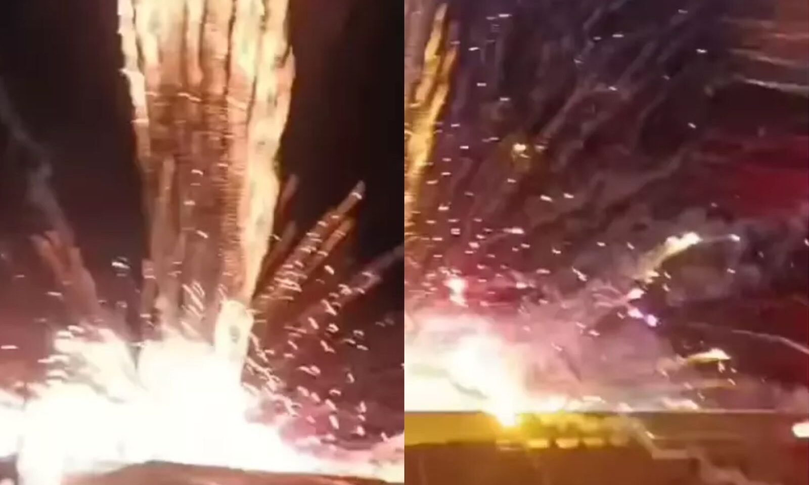 Do G1 – Imagens do evento mostram os fogos de artifício explodindo de cima do telhado de um imóvel onde funcionam algumas secretarias da prefeitura, local que fica em frente à Praça Municipal Guido Giazomazzi. Além do público, os fogos também atingiram veículos que estavam estacionados próximos, que sofreram danos com o impacto.