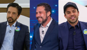 Da direita para esquerda: Ricardo Nunes (MDB), Guilherme Boulos (PSOL) e Pablo Marçal (PRTB)