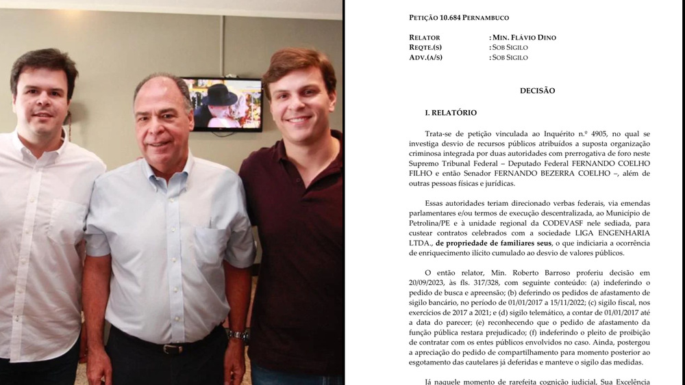 O documento, assinado pelo ministro Flávio Dino, do Supremo Tribunal Federal, aponta que o ex-senador Fernando Bezerra Coelho e o deputado Fernando Filho teriam indicado recursos milionários ao município com aval da Codevasf, beneficiando a construtora Liga Engenharia, empresa que passou a atuar fortemente no município de Petrolina após Miguel Coelho assumir a Prefeitura em janeiro de 2017.