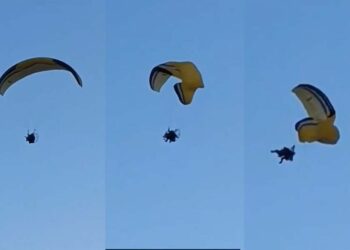 Veja o momento da queda de paramotor em Jaboatão dos Guararapes