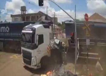 Carreta avança sinal vermelho, colide com trem e causa descarrilamento no Paraná