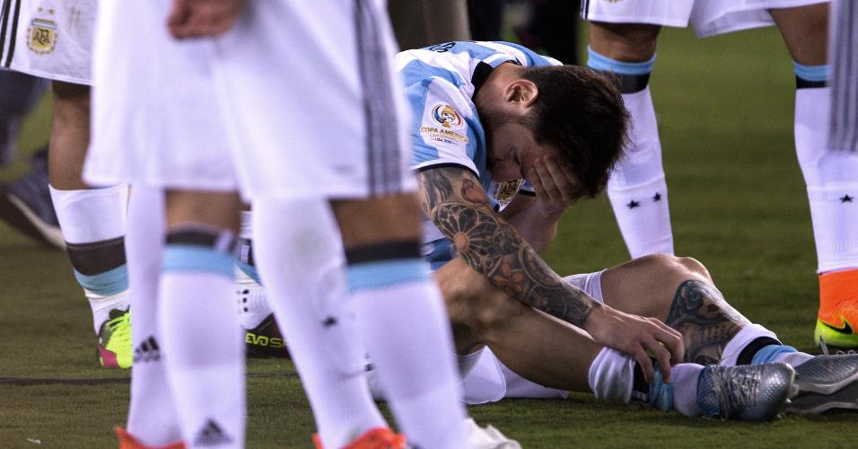 Mas a imagem que marcou a participação de Messi aconteceu na decisão de terceiro lugar: depois de um desentendimento com o chileno Gary Medel, ambos acabaram expulsos. Foi o primeiro cartão vermelho da carreira do argentino desde 2005.