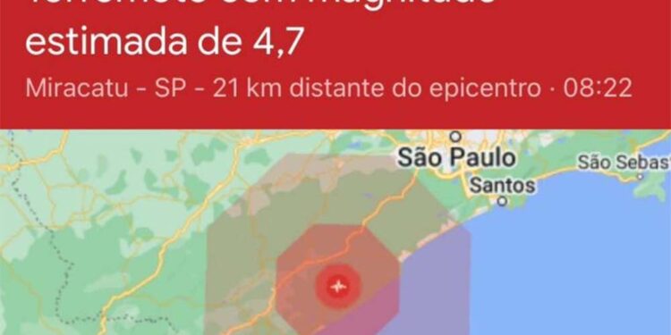 De O GLOBO — Moradores do interior e do litoral de São Paulo relataram ter sentido a terra tremer, na manhã desta sexta-feira, em várias cidades. A Defesa Civil do estado confirmou que, por volta das 8h22, um abalo sísmico foi sentido na região do Vale do Ribeira. Segundo o Centro de Sismologia da USP, o tremor foi de magnitude 4 na escala Hitcher, com epicentro no município de Iguape, mas pode ser sentido num raio de até 100km.