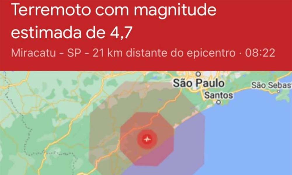 De O GLOBO — Moradores do interior e do litoral de São Paulo relataram ter sentido a terra tremer, na manhã desta sexta-feira, em várias cidades. A Defesa Civil do estado confirmou que, por volta das 8h22, um abalo sísmico foi sentido na região do Vale do Ribeira. Segundo o Centro de Sismologia da USP, o tremor foi de magnitude 4 na escala Hitcher, com epicentro no município de Iguape, mas pode ser sentido num raio de até 100km.