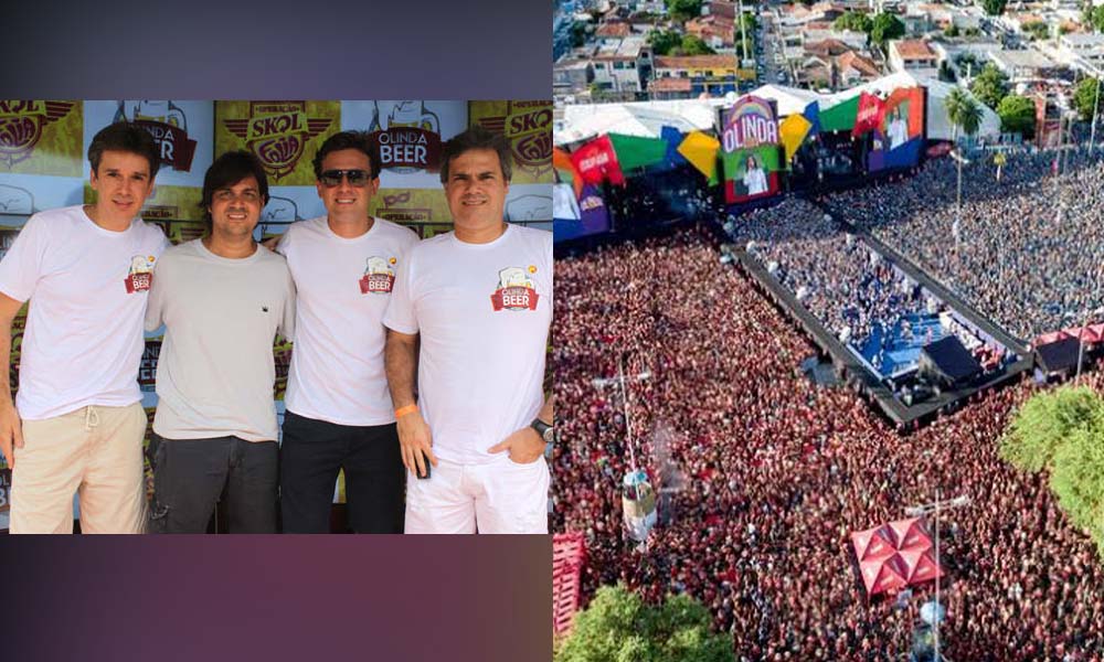 Os produtores Felipe Carreras, Bruno Rego, Augusto Acioli e Silvinho em 2013; e o Olinda Beer em 2023
