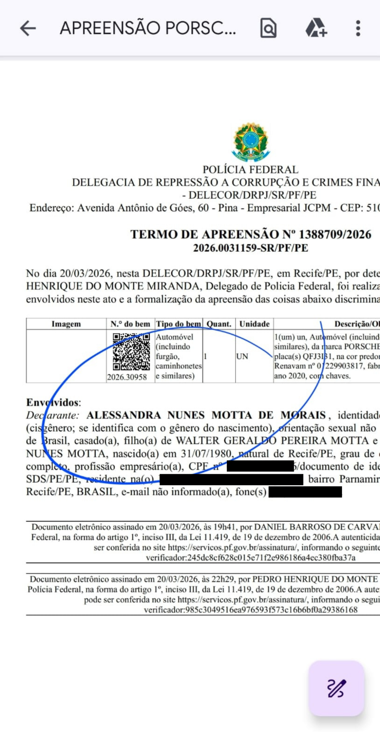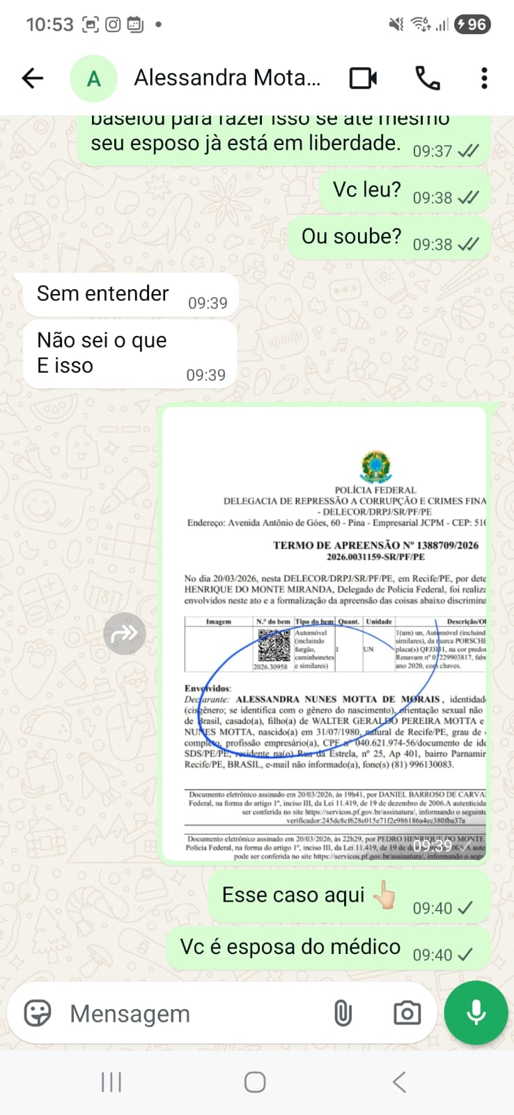 Como o blog noticiou ontem (23), com exclusividade, Alessandra aparece como proprietária de um Porsche Cayenne 2020, avaliado em cerca de R$ 764 mil, que foi apreendido durante a ação. Ela mora no bairro de Parnamirim, na Zona Norte do Recife. Nós mandamos mensagem por zap no seu telefone, mas ela disse que não sabia do que se tratava e nos bloqueou.