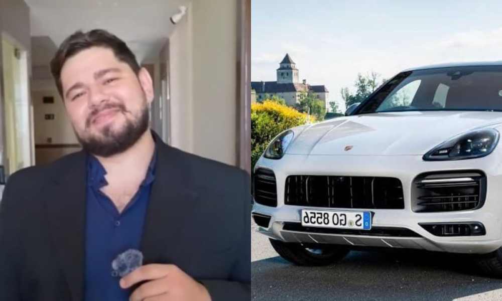 O empresário Luiz Henrique Bueno de 48 anos e a Porsche de sua esposa