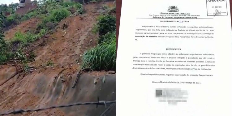 Do G1 — Os vereadores do Recife protocolaram ao menos 23 requerimentos, entre 2021 e 2024, para que fossem realizadas obras, vistorias e manutenções na barreira que deslizou na madrugada de quinta (6), deixando mãe e filha mortas na Rua Córrego da Bica, no bairro de Passarinho, na Zona Norte da capital pernambucana.