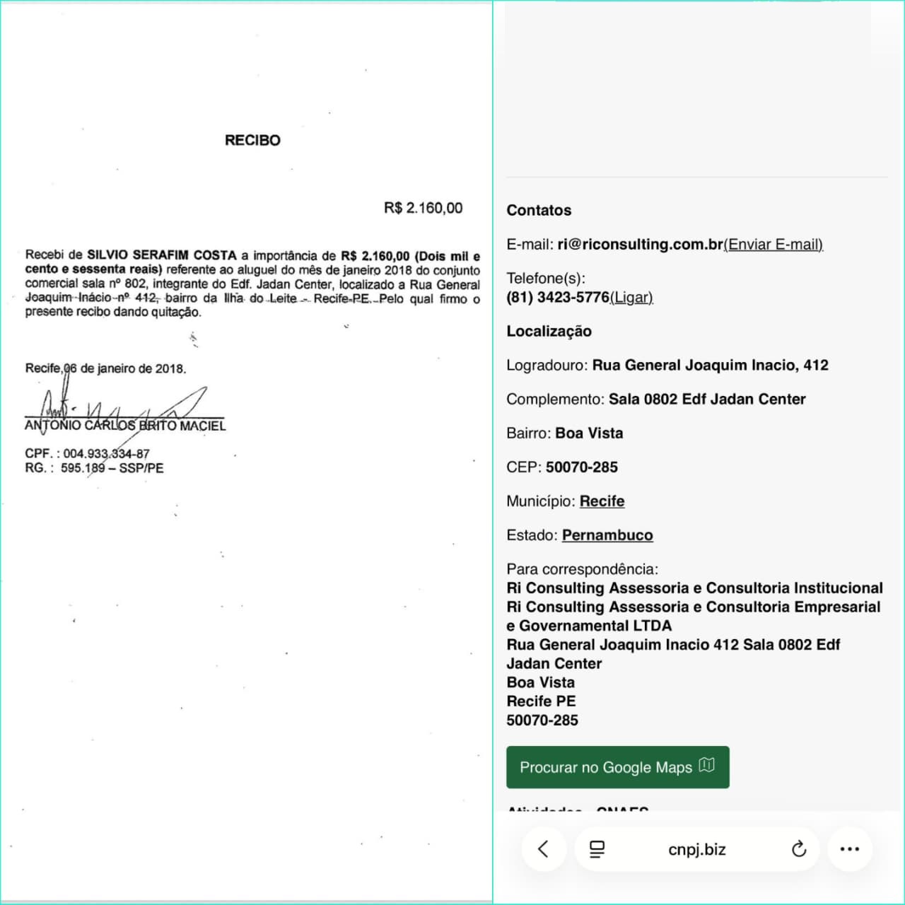 O endereço onde hoje opera a R1 Consulting Assessoria e Consultoria Empresarial e Governamental LTDA é exatamente o mesmo que já serviu como base de atividades políticas do ex-deputado Sílvio Costa, seu pai.