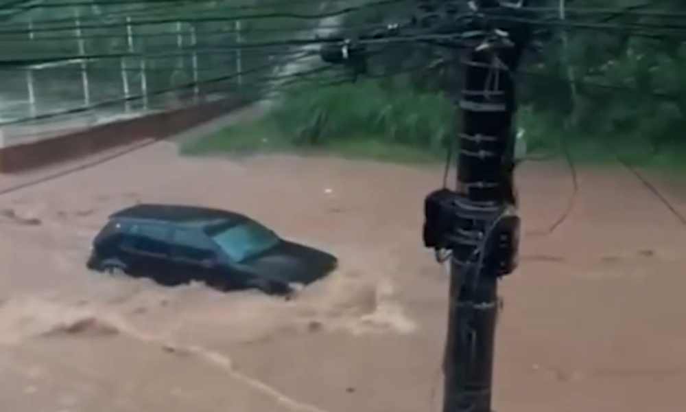 Vídeo impressionante mostra carro sendo arrastado por enxurrada na Grande São Paulo